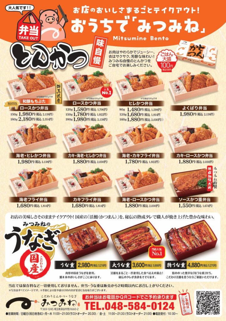 『贈って喜ばれ、食べて幸せ。年末年始は、みつみねのお弁当。』 いつも「みつみね」をご愛顧いただき、誠にありがとうございます。 お世話になった方へのご挨拶や、ご家族が揃う年末年始。 みつみねでは、お店の味をそのままお届けする贅沢なテイクアウト弁当をご用意しております。 群馬県産「和豚もちぶた」を使用したジューシーなとんかつや、職人が秘伝のタレで焼き上げた国産「活鰻」のうな重など、特別な日にふさわしい逸品を取り揃えました。 保存料を一切使用せず、一つひとつ丁寧にお作りする本物の味わいを、ぜひ大切な方とご堪能ください。